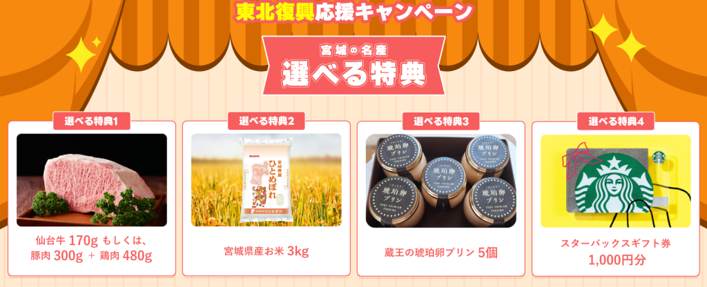 「東北復興応援キャンペーン」宮城の名産~選べる特典~